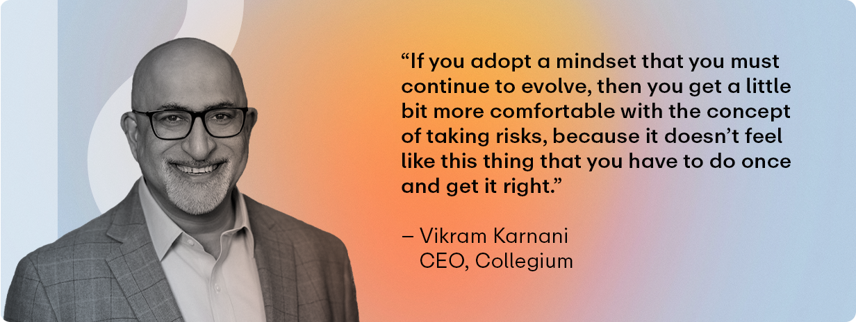 Karnani: Taking calculated and educated risks is part of what we do. I mean, there’s the age-old saying about how you’re never going to score a goal if you don’t take a shot, right? The fact is that transformation is not a one-time activity. It is a constant. If you adopt a mindset that you must continue to evolve, then you get a little bit more comfortable with the concept of taking risks, because it doesn’t feel like this thing that you have to do once and get it right.